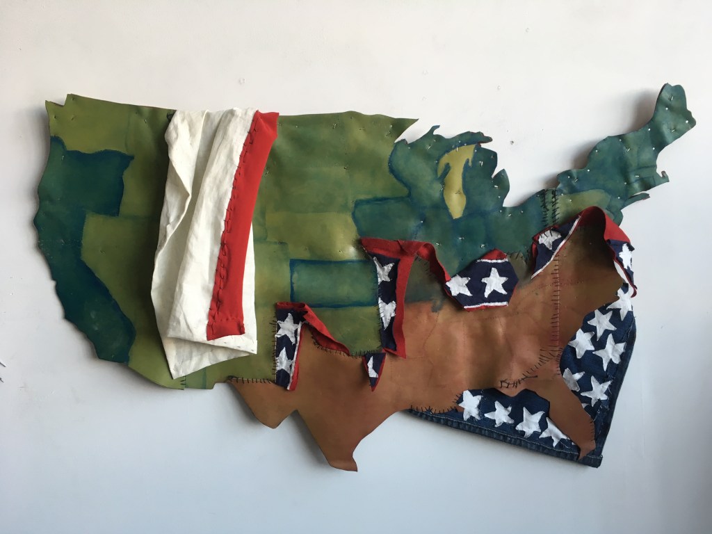 Never Surrender 2017 Leather, cloth 28 x 36 x 6 in.